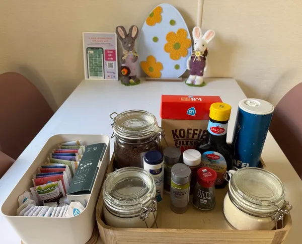 In ons huisje Bella is altijd voldoende filterkoffie, koffiemelk, thee en suiker aanwezig. Bij aankomst zijn er ook altijd 2 cups voor de Nespresso aanwezig om eerst een lekker bakkie te drinken. Mocht je iets zelf kopen. Aanvullen is lief